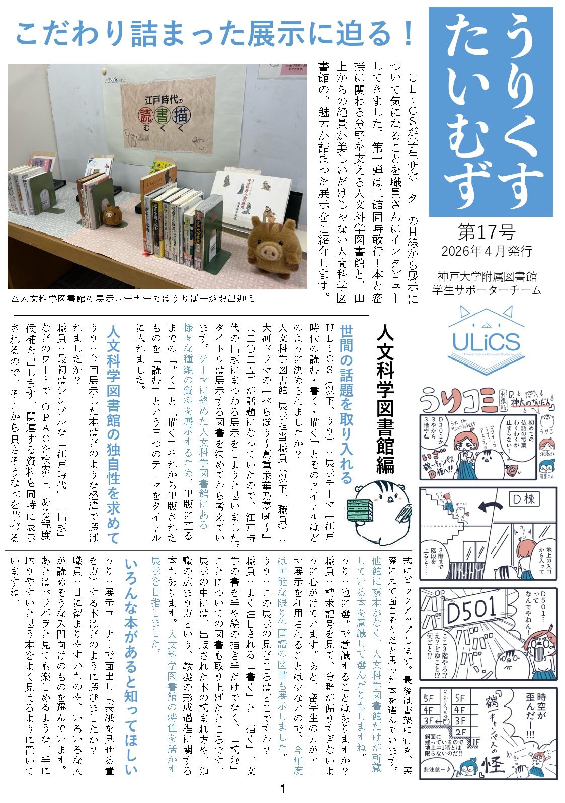 The ULiCS Times(うりくす・タイムズ)はULiCS発の団体紙です。活動報告や書評、コラムなどを掲載しています。
