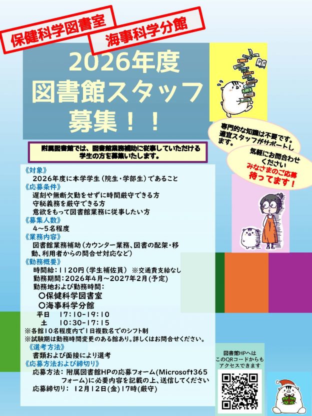 2026年度(前期)図書館スタッフ募集!!