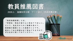 テーマ展示「教員推薦図書」を2026年1月から海事科学分館2階カウンター前にて開催しています。